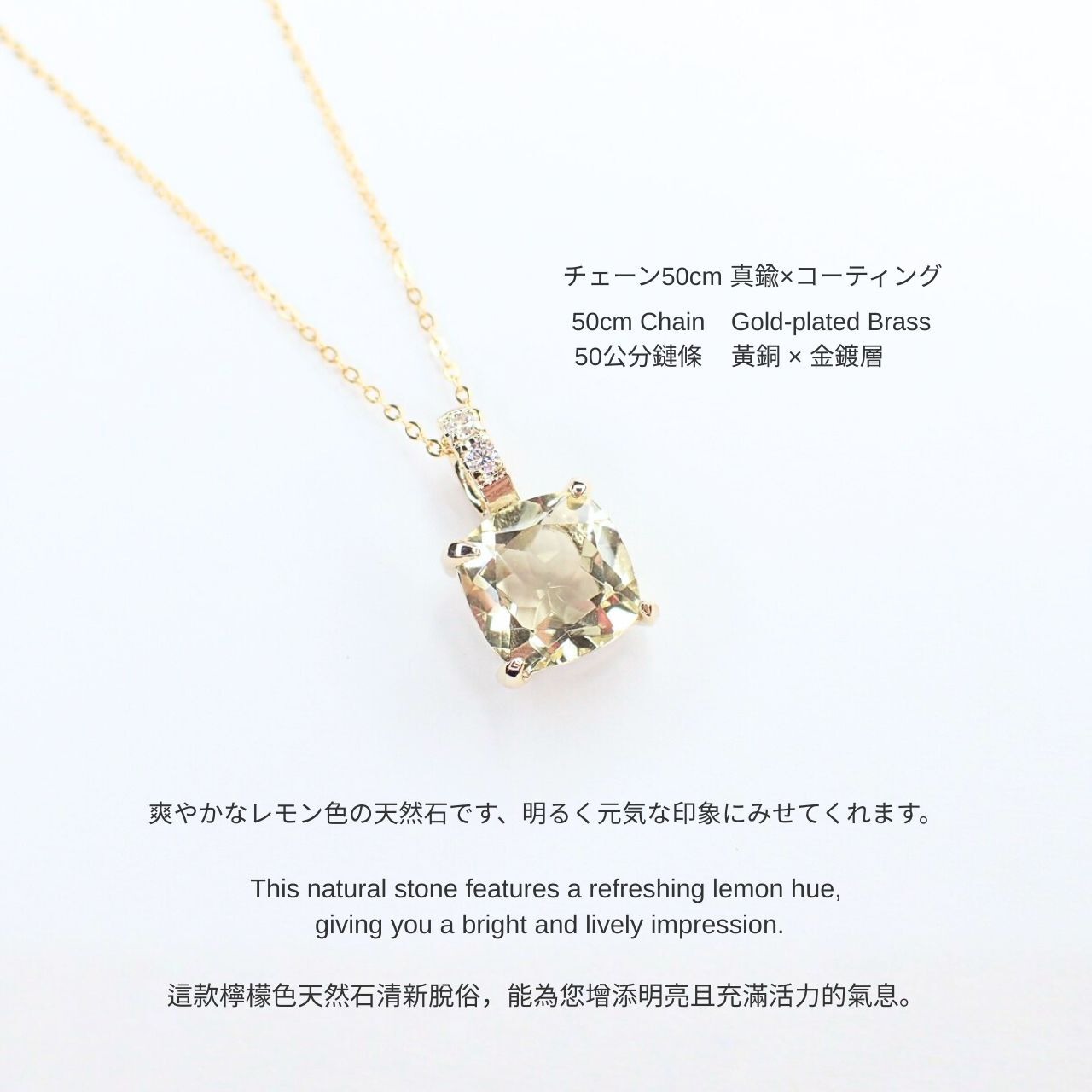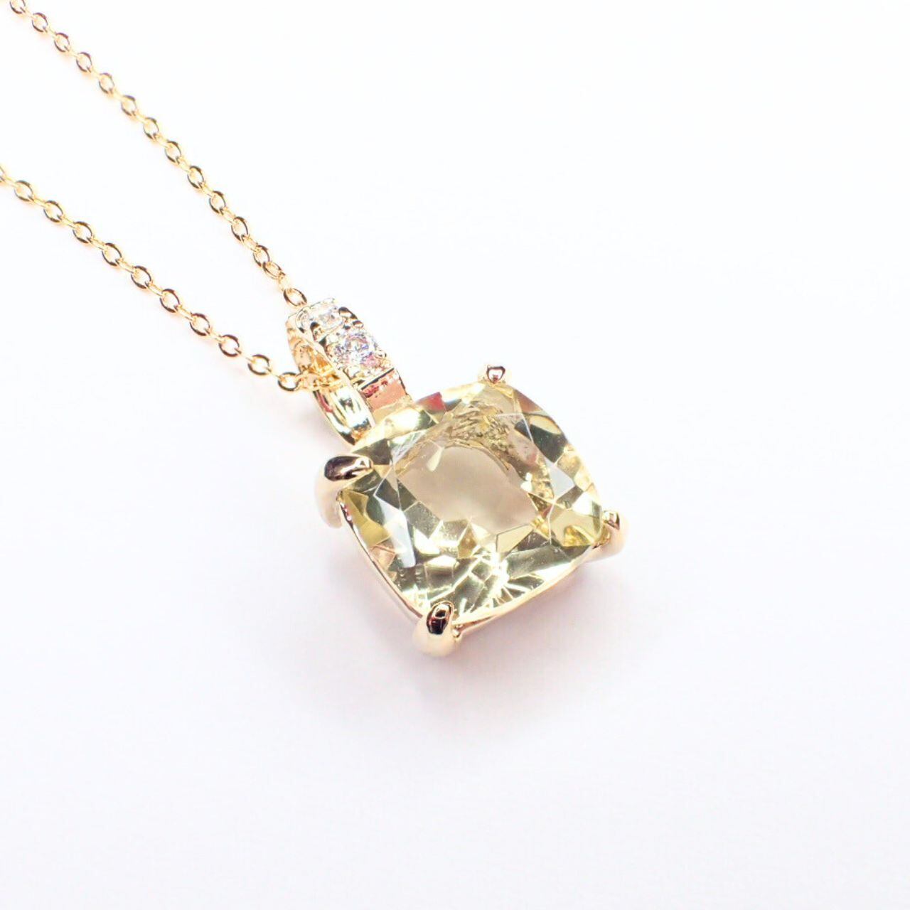 天然石レモンクオーツネックレス10mmSQ
