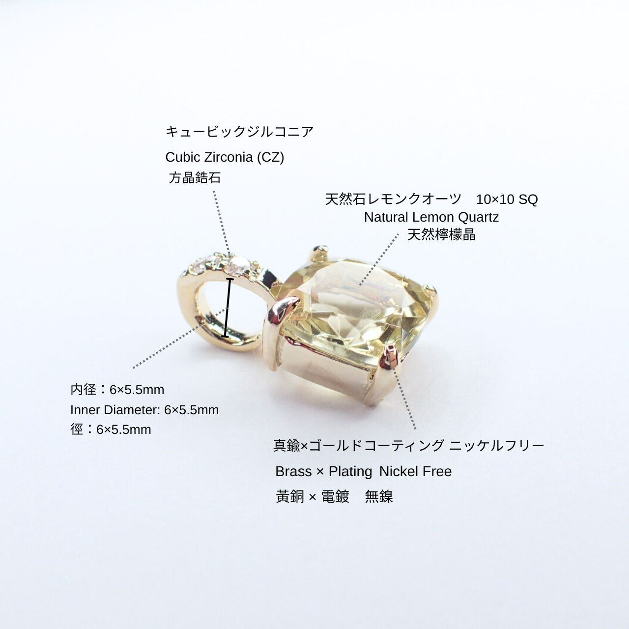 天然石: レモンクオーツ 10×10mm