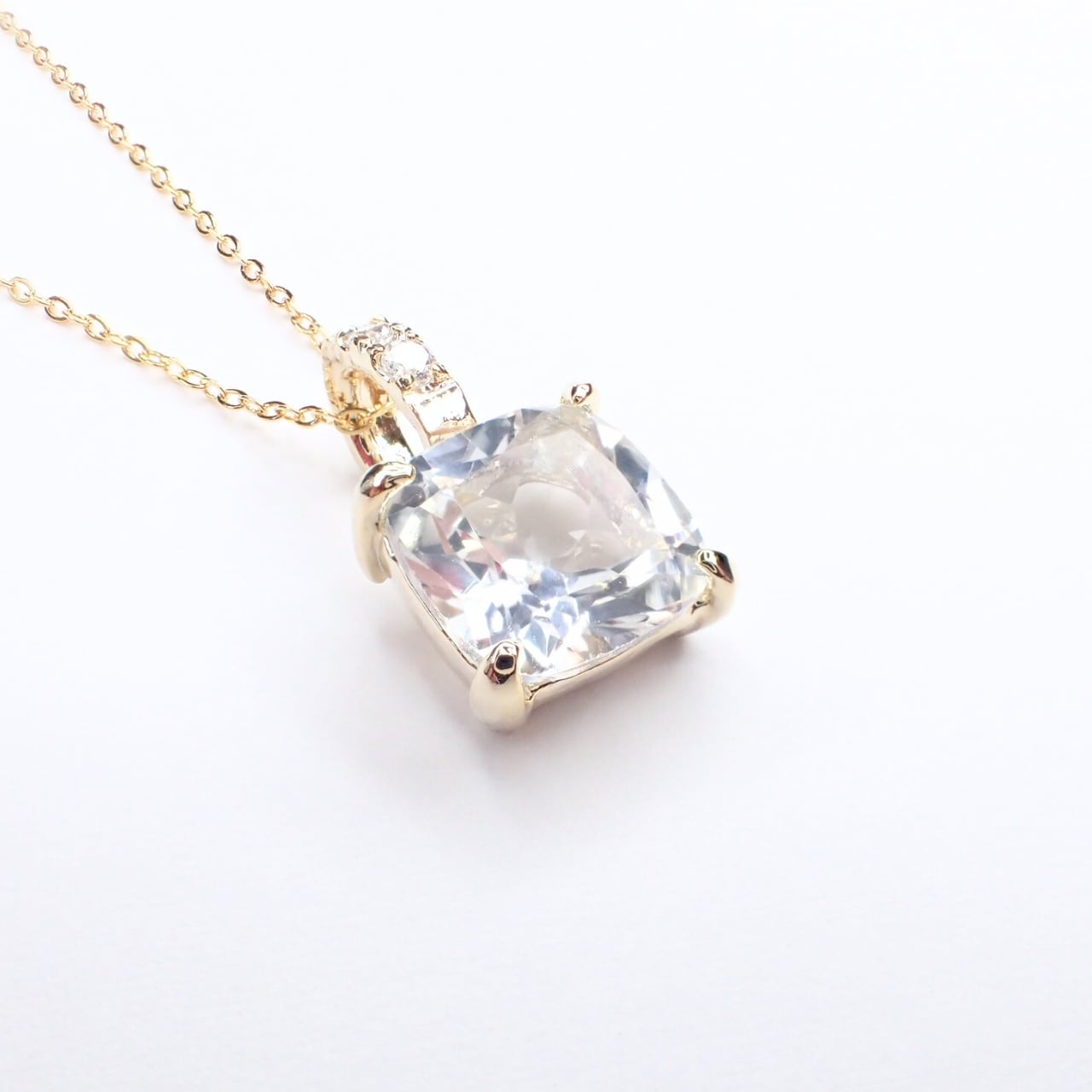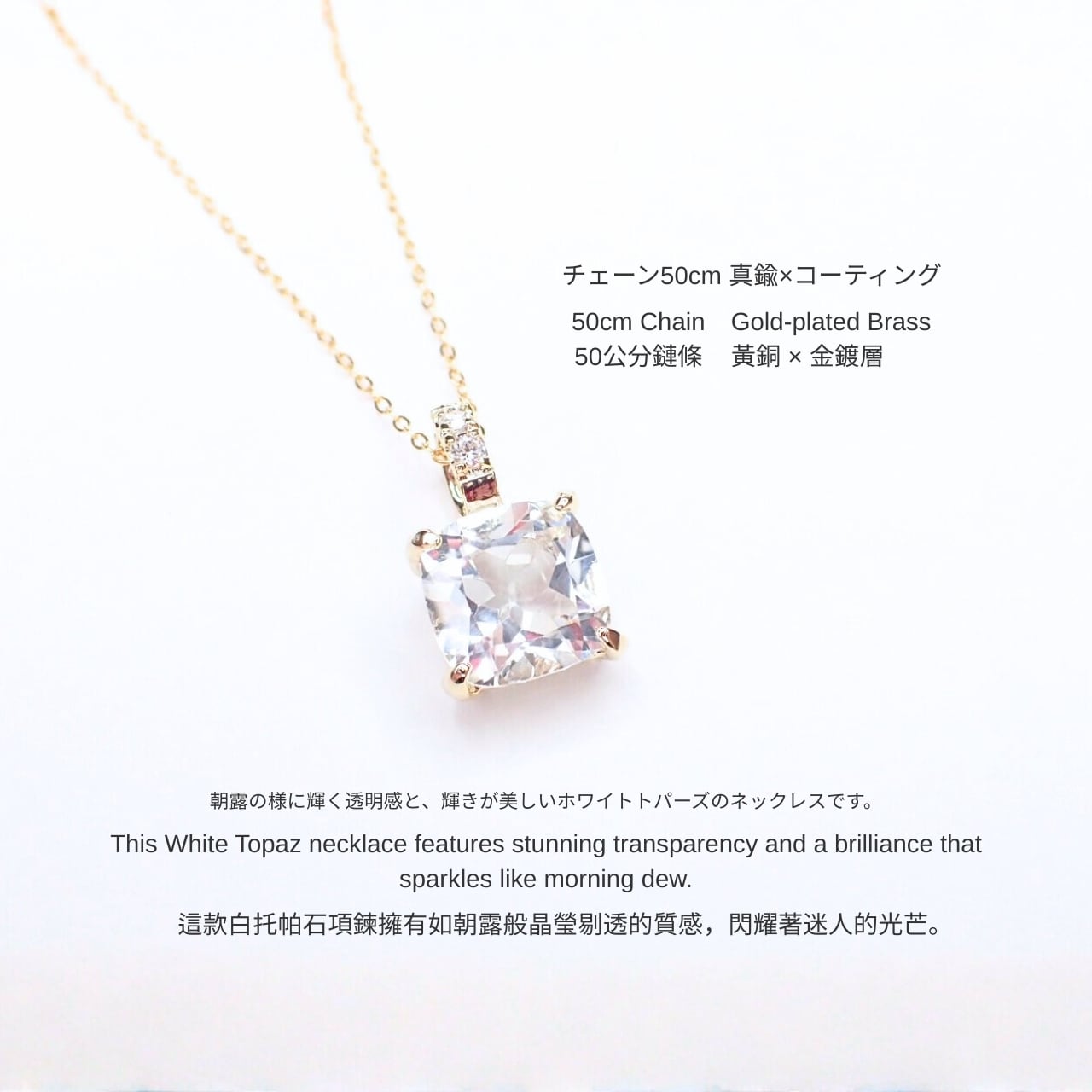 天然石ホワイトトパーズネックレス10mmSQ