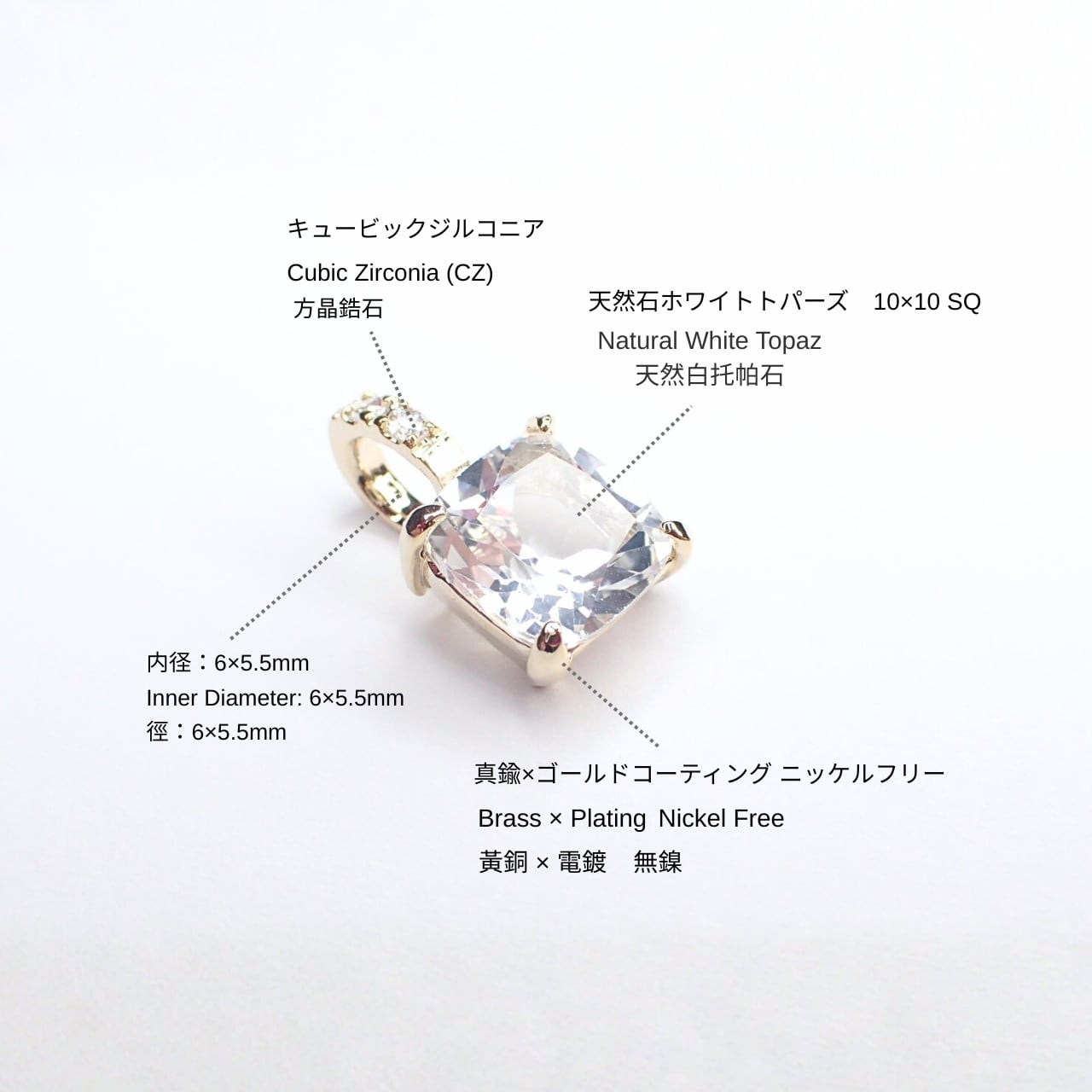 天然石: ホワイトトパーズ 10×10mm