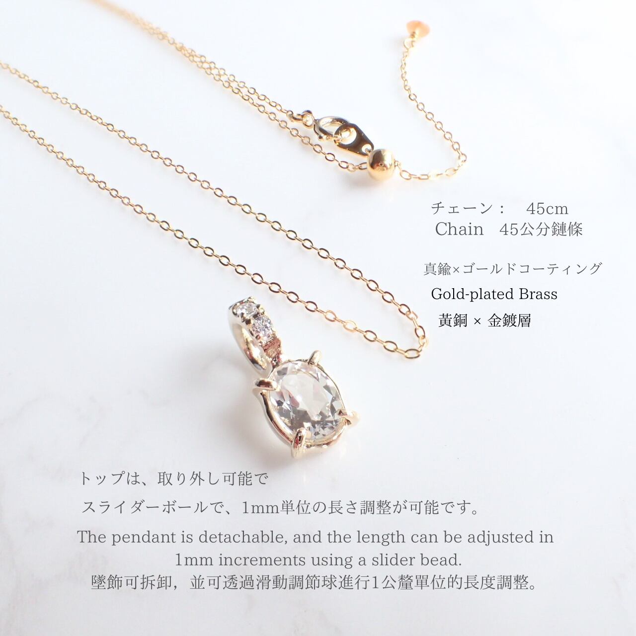 【仕様】 スライダーボールで、1ミリ単位の長さ調整が可能です。お洋服の襟に合わせて、最適な長さで着用いただけます。