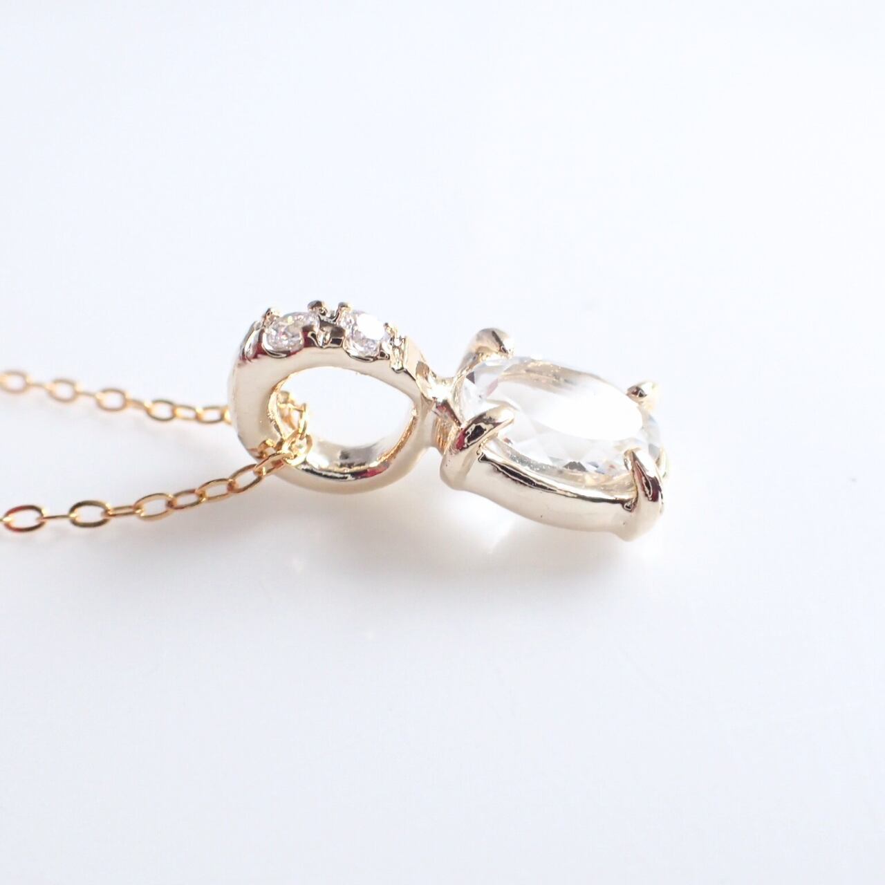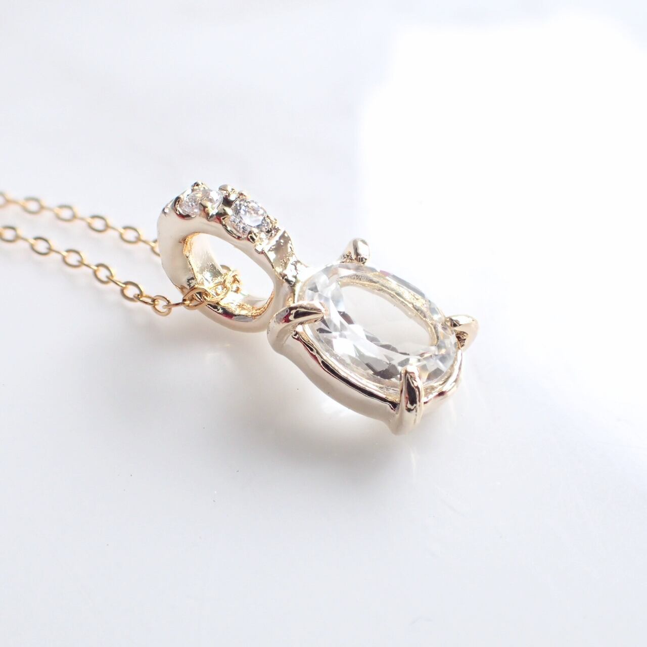 カットの美しいホワイトトパーズのネックレスです。